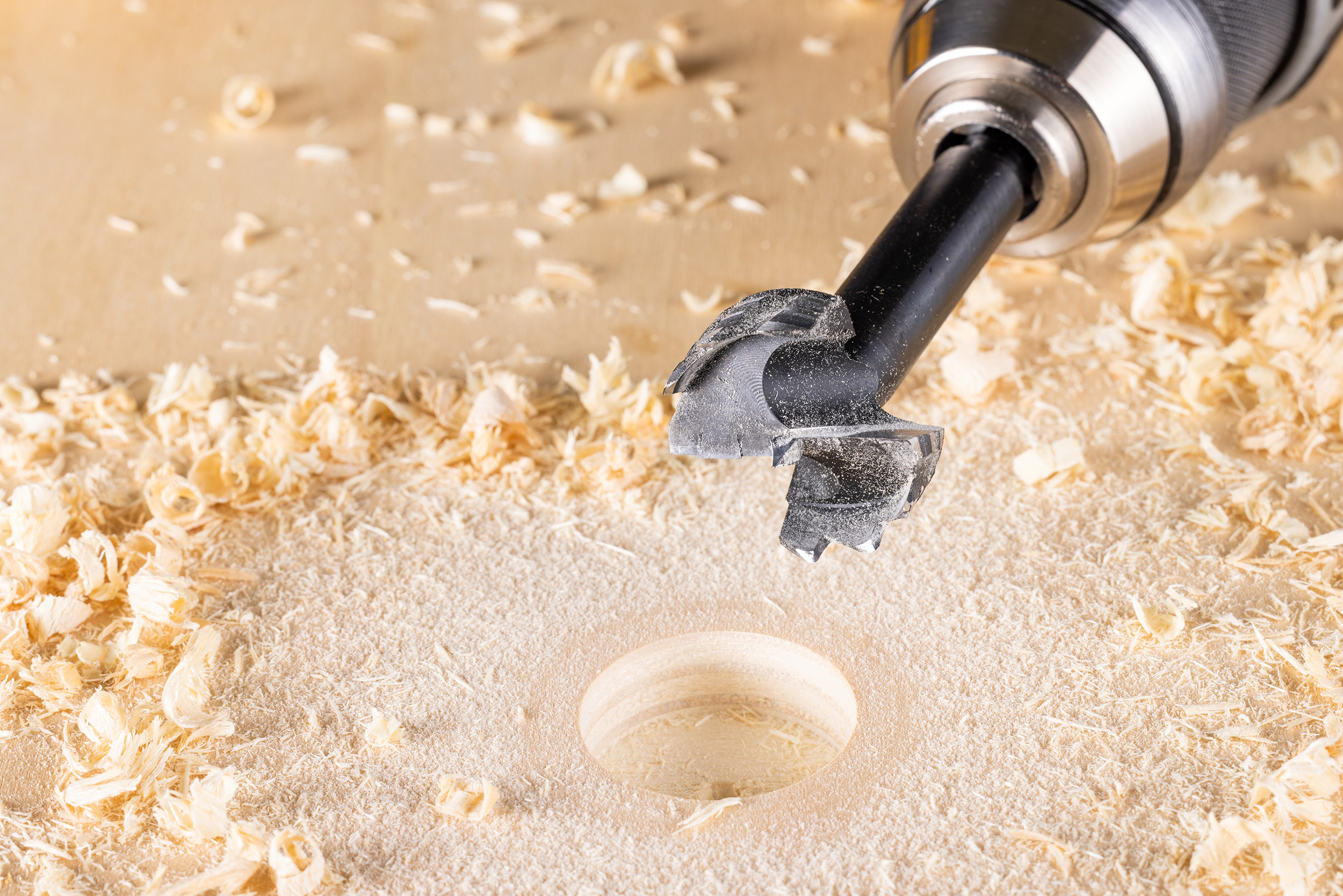 Hervorragend für die Handbohrmaschine geeignet Zwei Hauptschneiden, gezahnte Seitenschneide, Zentrierspitze, optimaler Spankanal, präzise Ausführung, sauber und ausrissfrei, Schaft zylindrisch mit Sechskant, neue Schneidengeometrie.