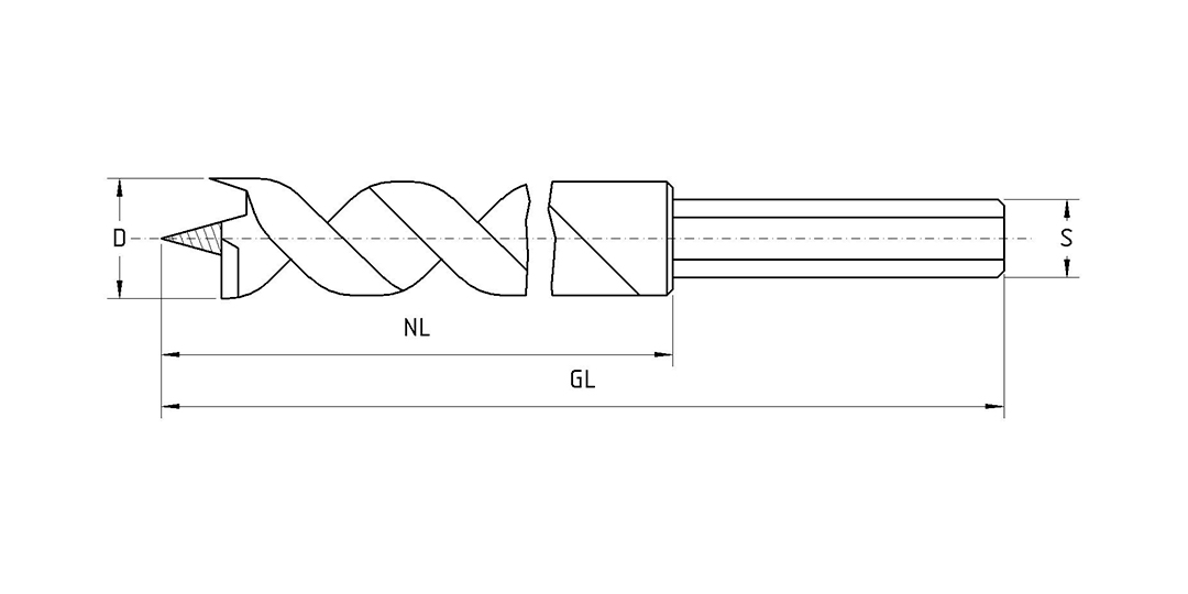 Zur Verwendung in der Handbohrmaschine. Die Gewindespitze sorgt für raschen Vortrieb, kein zusätzlicher Druck notwendig, einschneidig für große Bohrtiefen, Schaft mit Sechskant. HW-bestückt für besonders harte Hölzer auf Anfrage.
