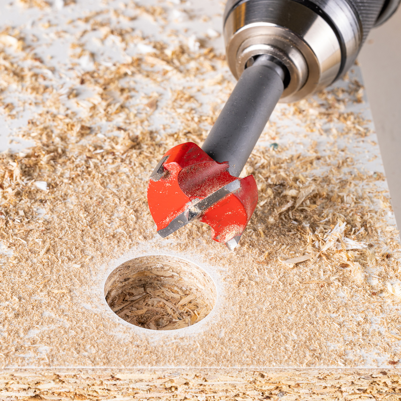 Hervorragendfür geführtes Bohren geeignet. Zwei Hauptschneiden, zwei kurze Vorschneider, Zentrierspitze, großer Spankanal, präzise Ausführung für saubere und ausrissfreie Bohrungen. Werkzeug kann mehrfach geschärft werden.