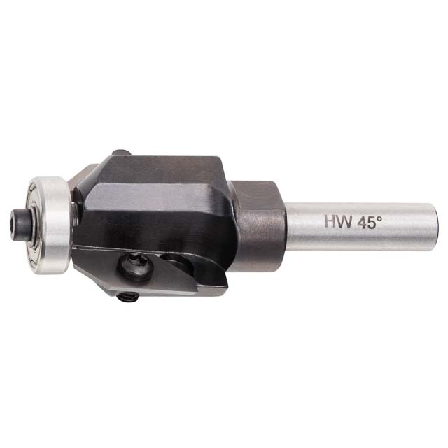 Fasefräser mit Kugellager, zweischneidige Ausführung, mehrfach schärfbar. Mit Wendeplatte für lange Lebensdauer.
